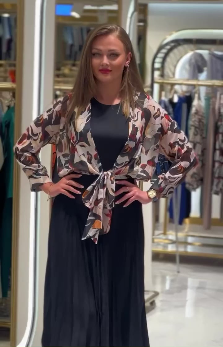Elegante jurk met chiffon blouse en geplisseerde rok