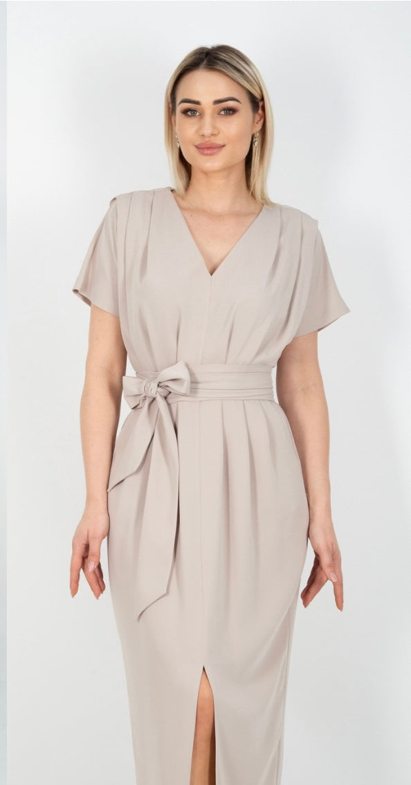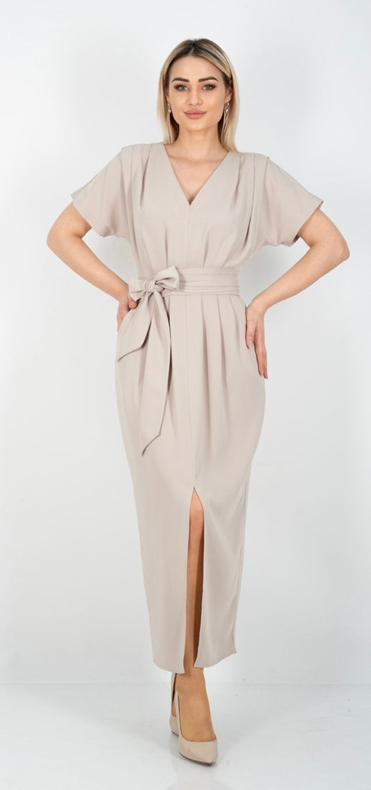 Bring sophistication and elegance to your wardrobe with this beautiful cream-colored midi dress. With its timeless design and flattering fit, this dress is perfect for a variety of occasions, from formal events to stylish everyday looks.