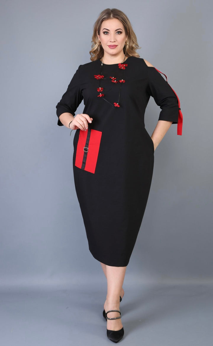 Maak een gedurfd statement met deze elegante zwarte midi-jurk met rode accenten en voel je zelfverzekerd en stijlvol bij elke gelegenheid. Bestel nu en voeg een uniek en verfijnd stuk toe aan je garderobe dat je keer op keer zult dragen.