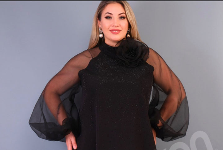 • Luchtige, transparante mouwen met lichte plooien.