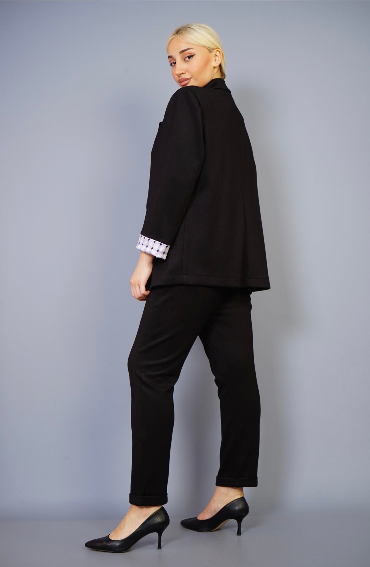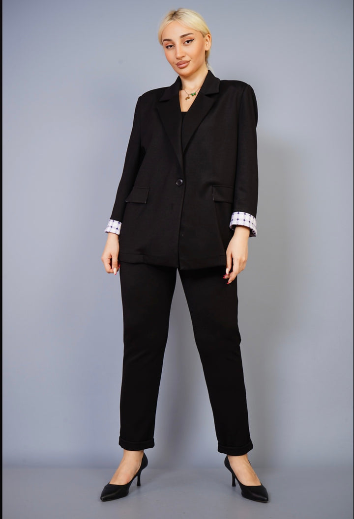Stylingtip: Combineer dit zwarte pak met een paar elegante hakken en minimalistische sieraden voor een verfijnde, professionele look. Ideaal voor kantoor, zakelijke bijeenkomsten of formele evenementen.